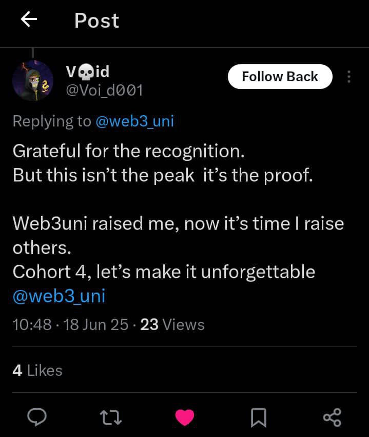Web3 University is more than just an educational platform, it’s a supportive community that values each student. We take pride in celebrating our students' milestones and creating a learning environment where everyone feels seen, supported, and connected.