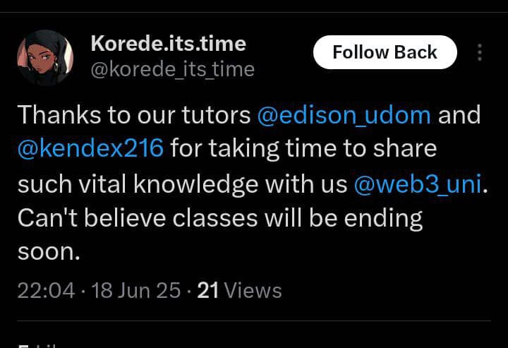 Web3 University is officially registered and recognized by the government of her country, ensuring a secure and credible learning environment for all students.